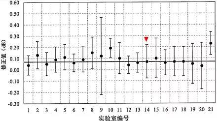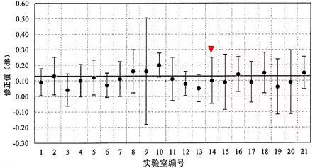 我們使用AQ2200-231光功率探頭作為計量標準,上圖實驗室編號14(紅色標記)為本校準實驗中心的比對結果,我們在1310nm和1550nm波長光功率均取得了滿意的比對結果。另外從比對結果圖中也可以發(fā)現(xiàn)YOKOGAWA的光功率計具有較好的測量準確度,其測量結果數(shù)值與主導實驗室較為接近(1310nm的功率示值偏離參考值-0.03dB,