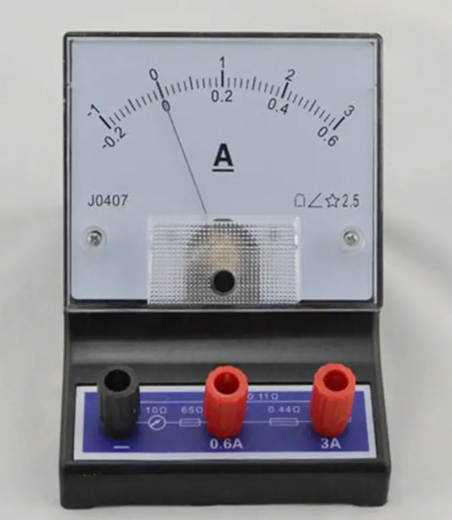 磁電式電流表:物理學(xué)實驗中常用的測量電流大小的儀器。當(dāng)電流通過線圈時,導(dǎo)線受到安培力的作用,線圈左右兩邊所受安培力的方向相反,安裝在軸上的線圈就會轉(zhuǎn)動。測量時指針偏轉(zhuǎn)的角度與電流的大小成正比,可以用指針的偏轉(zhuǎn)角度來指示電流的大小,這種電流計的刻度是均勻的。