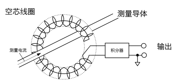 羅氏線圈(Rogowski Coil)又稱為羅柯夫斯基線圈,是一種空心線圈。一般由線圈和信號處理電路兩部分組成。由若干匝導(dǎo)線均勻?qū)ΨQ地繞制在一定形狀和尺寸的非鐵磁材料上制成,一次側(cè)導(dǎo)體垂直穿過骨架中心,當(dāng)導(dǎo)體中流過變化的電流,導(dǎo)體周圍會產(chǎn)生變化的磁場,由電磁感應(yīng)原理可知線圈輸出端產(chǎn)生的感應(yīng)電動勢。