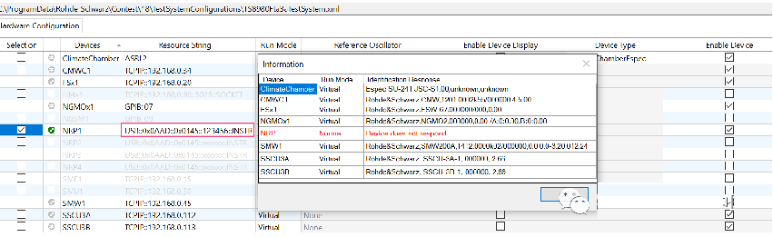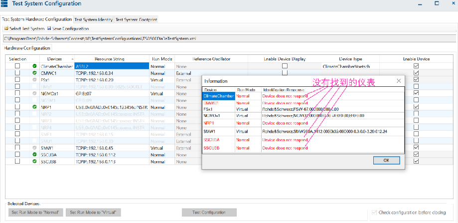 a.) IP地址沒有設(shè)對(duì),把FSW,SMW的IP地址設(shè)成與test system configuration 對(duì)話框里的IP一致。