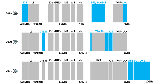 圖1 新的頻段不斷擴(kuò)展以支持不同的終端應(yīng)用