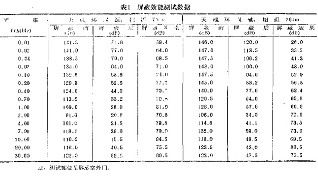 以某單位建造的屏蔽室為對象,我們對其進行了屏蔽效能測試,表1提供了部分測試數(shù)據(jù)。