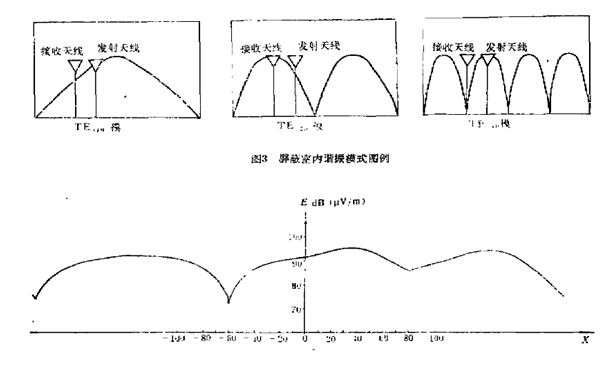 在屏蔽室內(nèi),天線處的合成場取決于直射波與反射波的相位差。假設(shè)反射波只經(jīng)過壁面一次反射、在金屬壁板界面上入射波與反射波相位差180的情況下,當(dāng)直射波與反射波的波程差是半波長的奇數(shù)倍時,二者桑加后的合成場將增加;當(dāng)直射波與反射波的波程差是半波長的偶數(shù)倍時,合成場將減弱。若反射場經(jīng)壁面二次反射到達接收天線,則結(jié)果與上述情況恰好相反。