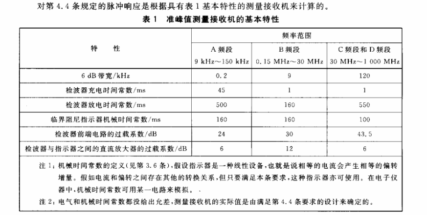 對(duì)于準(zhǔn)峰值測(cè)量接收機(jī)(包含測(cè)試控制系統(tǒng)和計(jì)算機(jī)軟件),要求特性如下