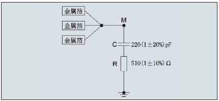模擬手是一個(gè)規(guī)定尺寸的金屬箔(帶),它按規(guī)定的方式放在或纏繞在設(shè)備上通常被使用者接觸的部分,一般采用銅箔,厚度為0.05mm,寬度為60mm,長(zhǎng)度為150mm-200mm,金屬箔按照規(guī)定的方式借助一個(gè)RC組件連到測(cè)量系統(tǒng)的參考點(diǎn),該組件由一個(gè)個(gè)C=220pF±20%的電容串聯(lián)一個(gè)510Ω±10%的電阻組成,模擬人體的RF阻抗。