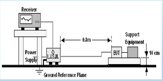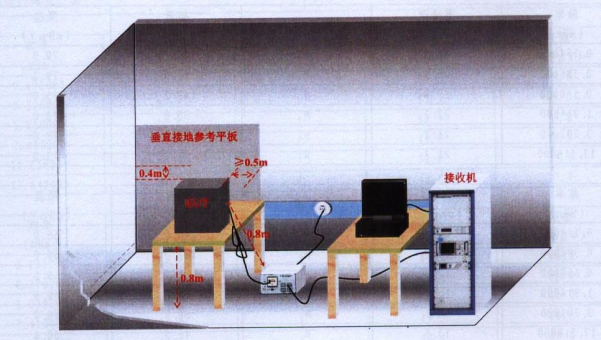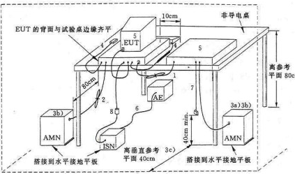 落地式設(shè)備距離LISN80cm,EUT與輔助設(shè)備放置在距離GRP0.1m的非導(dǎo)電桌上。