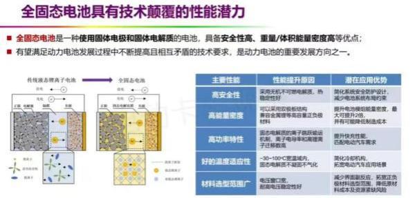 在業(yè)內看來,固態(tài)電池——尤其是完全不含液態(tài)電解液的全固態(tài)電池,跟現(xiàn)有的液體鋰離子電池相比,之所以具有技術顛覆的潛力,是由于電池具有高安全性、高能量密度、高功率、寬溫度適應性、材料的選擇范圍更廣等特性。