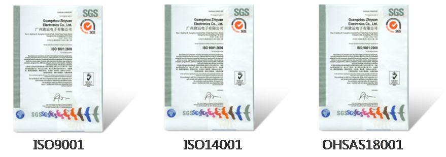 4、隔離電源模塊的生產(chǎn)工廠產(chǎn)線是否規(guī)范。電源模塊生產(chǎn)線需要通過(guò)ISO9001, ISO14001,OHSAS18001等多項(xiàng)國(guó)際認(rèn)證,如下圖所示。